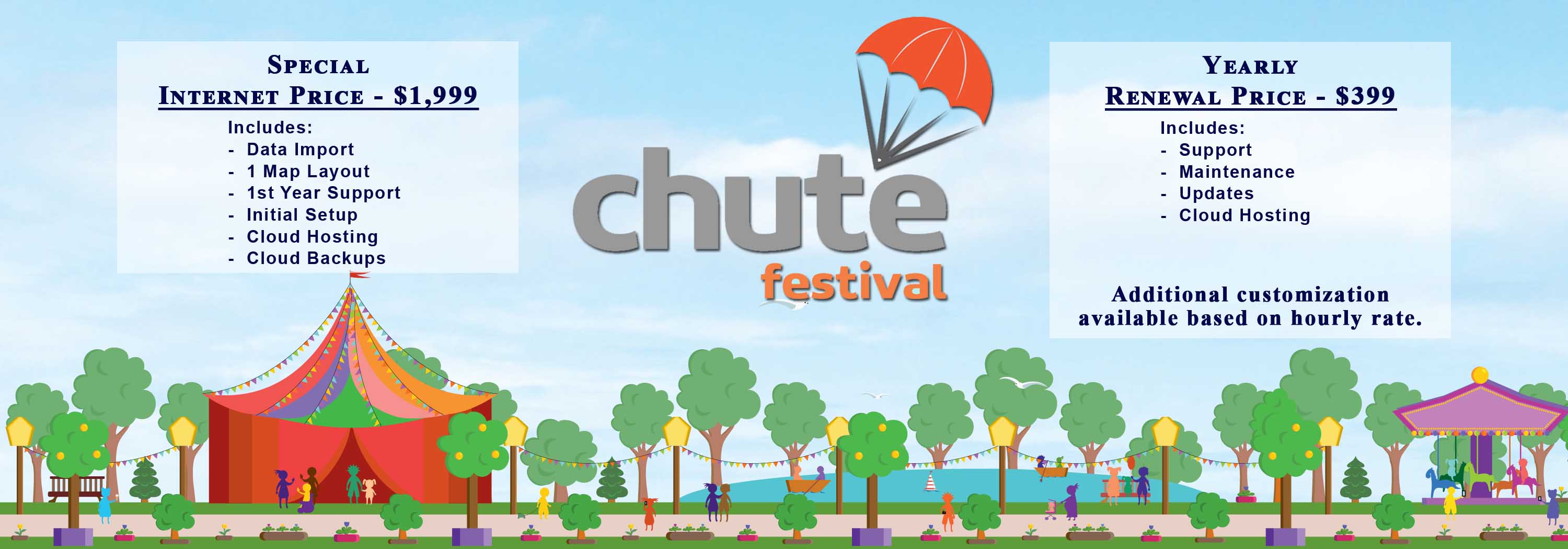 Chute Festival works on-line which means you aren’t tied to a specific machine. You won’t have limits on users or computer access. There are no limits on the number of users and no extra charges for access from more than one machine. Enjoy full access from your tablet or phone with fully enabled web management.
